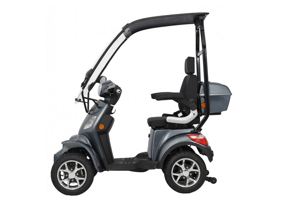 Darüber hinaus zeichnet sich der Lithium-Ionen-Akku durch seine außerordentliche Lebensdauer aus: Selbst nach 1000 Ladezyklen behält er noch 80% seiner Kapazität. Dank des bereits montierten Daches sind Sie vor Regen geschützt. Unser Elektromobil für Senioren ermöglicht eine sorgenfreie Fortbewegung, selbst in hügeligem Terrain, und das nahezu ohne Geräusche.