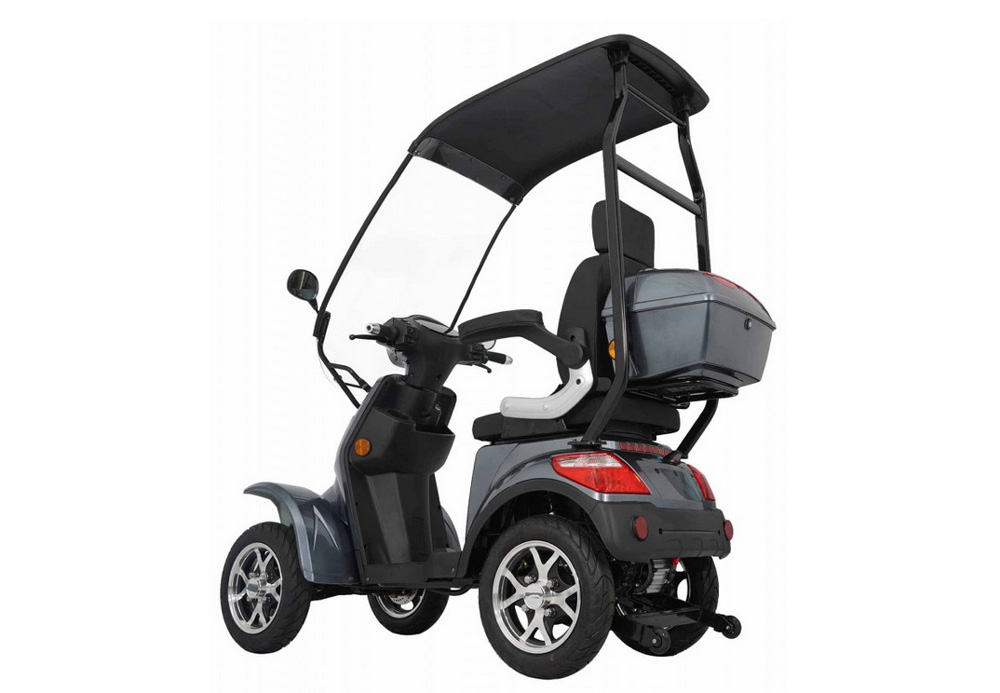 Das Seniorenmobil „VITA CARE 4000“ zeichnet sich durch sein formschönes Design und seine leistungsstarke Ausstattung aus und verfügt über vier Räder, die eine hohe Fahrstabilität gewährleisten. Der leistungsstarke Elektromotor mit 1000 Watt, betrieben durch einen 60V/20Ah-Lithium-Ionen-Akku, versorgt das Elektromobil mit genug Energie für Fahrten bis zu 50 Kilometer. Für diejenigen, die weiter fahren möchten, bietet der optionale 60V/30Ah-Akku eine erweiterte Reichweite von bis zu 75 Kilometern.